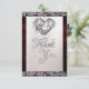Cartão De Agradecimento Pérolas Elegantes, Fita de Borgonha e Faísca