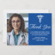 Um clássico cartões de agradecimentos personalizado de graduação em faculdade de medicina em azul e branco clássico para uma faculdade ou universidade da classe de 2024. Personalize com seu nome escolar e classe graduada sob o caduceus e a caligrafia para um cartão com fotos elegante e personalizado de obrigados com seu retrato de mais velho.