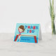 Este cartão de agradecimento de festa de aniversário de ginástica de meninas apresenta uma linda menina ginasta morena em frente a uma trave. Ela está usando um maiô vermelho e sorrindo ao lado de seu belo monograma azul.