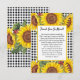 Envie uma nota personalizada de gratidão com este Cartão de Agradecimento Personalizável, apresentando um clássico padrão xadrez preto e três girassóis amarelos vibrantes. Adicione facilmente sua própria mensagem pessoal na área personalizável. Se preferir uma mensagem manuscrita, simplesmente exclua o texto de exemplo na caixa de personalização antes de finalizar a compra. Perfeito para Chás de Panela, Chás de Bebê, Aniversários ou qualquer ocasião especial.