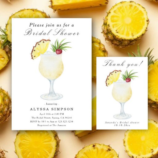 Cartão De Agradecimento Pina Colada Cocktail Bridal Shower