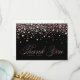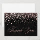 Envie agradecimentos com este cartão postal de agradecimento moderno e elegante. Ele apresenta pontos de confete de ouro rosa falso e escrita caprichosa em fundo preto. Este cartão postal de agradecimento de ouro rosa é perfeito para uso pessoal e ocasiões especiais, como casamentos, chás de noiva e formaturas. Personalize adicionando nomes e mensagens.