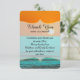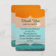 Cartão de agradecimento com um lindo design de nascer do sol laranja na praia e água do mar azul turquesa. Design muito clássico e sofisticado para qualquer evento ou ocasião. Todas as impressões de fotos.