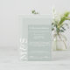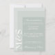 Simples cartão de cerimônia de casamento de guião chic moderno para acomodações, noivas que estão adorando suas cerimônias em um estilo moderno e cores de sábio. A suíte de casamento chic tem uma fonte branca moderna com monograma de iniciais ao lado.