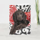 Cartão de Dia de os namorados de cachorrinho Irish Water Spaniel. Fofinho canino contra fundo contemporâneo em vermelho, preto e branco. Sem flores, apenas corações e bolsas de beleza. Dentro é vazio deixado para sua própria mensagem.