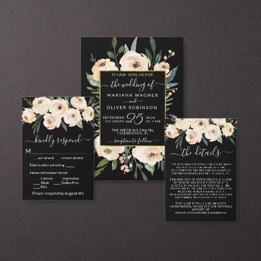 Black Floral Beige Blush Wedding Invitation SuiteCriado por Denise Witmer