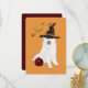 Cartão de agradecimento plano de 5X7 pol., cartão Samoyed de Halloween. Traga um sorriso para um amigo ou familiar; envie um cartão especial de Halloween. Todos os rendimentos vão para a organização Samoyed Rescue Trust, uma instituição de caridade registrada federalmente nos EUA, 501(c)3. DesignsbyLee é uma artista voluntária que não recebe remuneração por este trabalho, mas uma grande satisfação.