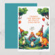 Diga “Obrigado” com estilo dinossauro com este cartão de agradecimento personalizado com tema de dinossauro! Com dinossauros brincalhões, um cenário de floresta exuberante e um vulcão rugindo, este design adiciona diversão pré-histórica à sua mensagem sincera.