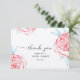 Cartão de agradecimento plano para chá de noiva é decorado com encantadoras peônias em aquarela, flores cor-de-rosa suaves e folhas esmeralda.