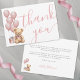 "Podemos esperar o BEAR" define o tom para este adorável cartões de agradecimentos chá de fraldas, perfeito para celebrar a futura mãe e a sua filha. A frente apresenta um ursinho de pelúcia bronzeado com um arco rosa e as palavras "Obrigado" em roteiro rosa. O dorso mostra um doce urso segurando dois balões ao lado de uma nota e espaço personalizáveis para o nome da futura mãe. Você pode personalizar a nota ou removê-la se preferir escrever manualmente sua própria mensagem. O design inclui balões de aquarela cor-de-rosa e uma mistura de scripts elegantes e fontes serif clássicas, com cores e fundo que você pode personalizar para corresponder ao seu tema. Esta carta chata divertida e sincera funciona lindamente para os chás de fraldas. Disponível como cartão impresso ou download digital para e-mail ou impressão local.