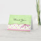 Este cartão apresenta um lindo padrão de pontos de bolinhas verde-claro e branco com uma borda floral. Há também uma libélula rosa adicionada para dar interesse. Compre como mostrado e use como um cartão de agradecimento ou personalize com seu próprio recado.
