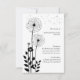 Um lindo cartão de agradecimento por condolências com flores silvestres e folhagens em preto contra um fundo branco.