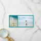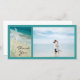 Envie uma mensagem de obrigados, agradecimento e gratidão após um destino insular ou chá de tema trópico, aniversário ou casamento com o Cartão com fotos natural Tropical Beach Obrigado. Esta taça personalizada Obrigado Cartões de fotos apresenta uma fotografia cênica da turquesa ou do oceano azul aqua em uma praia de areia branca com uma palmeira e design de espiral teal adornando a esquina.