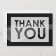 Este design ousado e versátil apresenta um pincel de brilho prateado falso-metálico sobre um fundo sólido que você pode mudar para qualquer cor que preferir. Sobrepondo essa imagem, coloquei um retângulo translúcido que tem "OBRIGADO" recortado usando uma fonte sans-serif em negrito. A parte de trás foi deixada em branco para sua mensagem pessoal.