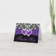 Este cartão de agradecimento de casamento com padrão de damasco preto e branco com uma fita roxa IMPRESSA e um broche de corações unidos com brilho FAUX e jóias de diamante combina com o convite de casamento mostrado abaixo. O texto é personalizável. Tudo será impresso como você vê no seu monitor. Eu não verei seu cartão, e a Zazzle NÃO irá corrigir nada (erros de digitação, desalinhamento, etc.). Se você precisar de outros itens correspondentes, envie um e-mail para niteowlstudio@gmail.com.