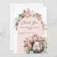 Cartão De Agradecimento Primavera Blush Pink Flor Bunny Baby Girl Chá