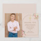 Um cartão de agradecimento de primeira comunhão com foto floral de grama de pampas rosa elegante. Personalize com sua foto especial e mensagem de agradecimento em letras douradas modernas e elegantes. Criado por Thisisnotme©