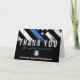 Este design apresenta uma bandeira da polícia com listras pretas e brancas, e uma fina faixa azul de linha também. Este cartões de agradecimentos é excelente por mostrar apreço e agradecimento a um oficial polícia, xerife, capitão, ou chefe por seu serviço.
