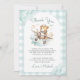 Cartões de agradecimentos de primeiro aniversario Pastel Gingham do Urso de Teddy do Avião