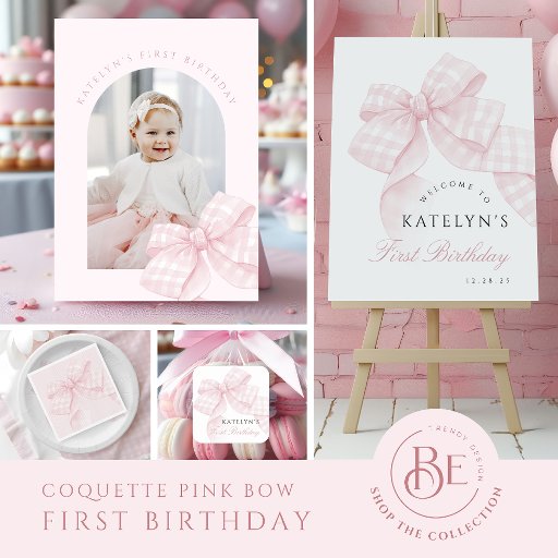 Pink Gingham Bow First BirthdayCriado por Betina Tomeo