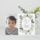 Este cartões de agradecimentos fotográfico apresenta uma elegante aquarela de eucalipto verde e ouroPerfeito para chá de fraldas, aspersão de bebê, aniversário ou qualquer celebração com tema botânico.