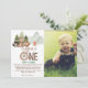Com um encantador urso aquícola, pinheiros rústicos e cenário de montanha, este design captura perfeitamente a magia de uma comemoração de primeiro aniversário com tema de acampamento. Os tons quentes e terríveis e alegres e alegres camponeses tornam-no uma forma doce e atenciosa de expressar sua gratidão. Personalize-o com a fotografia do seu filho e a mensagem personalizada para criar uma guarnição que os entes queridos irão merecer. Diga obrigado de estilo. Peça o seu hoje!