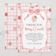 Cartões de agradecimentos de primeiro aniversario Gingham, cor-de-rosa, Strawberry