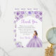 Cartão De Agradecimento Princesa num vestido roxo Doce 16 Obrigado
