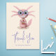 Cartões de agradecimentos de apreciação de professores bonito e axolotl. A ilustração única como um axolotl com óculos e retentor segurando uma pilha de livros e uma maçã. Personalize a mensagem na parte de trás do cartão e torne-a verdadeiramente uma mensagem do tipo. O brilho é simulado e é um impressão. Ilustrada e projetada por Patricia Alvarez.