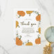 Obrigado seus convidados para vir a suas ocasiões especiais de outono com este cartões de agradecimentos rústico com um quadro de borda de abóbora com ilustrações de folhas multicoloridas. Perfeito para chás de fraldas, casamentos, festividades de outono, etc. Personalize o convite ao seu gosto.