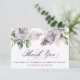 Lilases púrpuras de aquarela suave criam um cartões de agradecimentos bonito de aniversário de Quinceanera. A caligrafia adiciona uma estética elegante. Você também pode mudar fontes e cores facilmente. Faz parte da coleção Purple Primavera Lilac Flower. Ele permite que você escolha um tema e, em seguida, crie facilmente um conjunto único de convites, sinais de boas-vindas e decorações de festas. Com esses modelos de REPETIÇÃO, o planejamento da festa torna-se divertido e agradável.