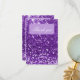 Centro de lavanda elegante com uma falso estrutura de brilho roxo. Rhinestone púrpura falso joalhou um gráfico de acento tiara atrás. Personalize com sua própria mensagem para a família e os amigos. Um perfeito "Obrigado" por todos os seus convidados Quinceañera. Absolutamente espantoso.