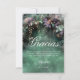 Uma ilustração com uma aquarela esbranquiçada da folhagem esmagadora em verde esmeralda com tons de lavanda e lilás, cintilante com luzes de fadas e poeira mágica, decora este primavera de verão cair o cartões de agradecimentos quinceanera com um tema de floresta encantado. Um elegante e moderno salva a data para uma celebração de conto de fadas. Perfeito para meninas que amam o cenário de conto de fadas, a floresta de fadas ou o tema de jardim de fadas e verde esmeralda com um toque de roxo lavanda. Itens correspondentes disponíveis.