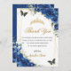 Cartão De Agradecimento Quinceañera Royal Blue Borboletas Douradas
