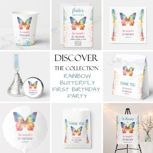 This card pairs perfectly with matching butterfly invitations, welcome signs, party plates, favor tags, and full coordinated décor. Ideal for rainbow butterfly themes, pastel birthday parties, spring celebrations, and whimsical garden-inspired events.