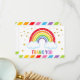 O design do arco-íris apresenta um arco-íris colorido, estrelas cintilantes douradas e confetes (não é brilho real). Digite sua própria nota de agradecimento ou exclua para cartões com verso em branco para escrever à mão sua mensagem pessoal. Para acessar as ferramentas avançadas de edição, vá para “Personalizar”, role para baixo e pressione o link "clique para personalizar ainda mais".