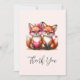 Cartões de agradecimentos com uma imagem adorável de 2 raposas vestindo óculos cardíacos agudos de rosa. Decorado com sotaques cardíacos.