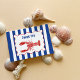 Send out thank you cards with a nautical look. The front of these cards feature my hand drawn realistic style illustration of a lobster in red with the customizable message THANK YOU above in blue lettering. The text and graphic are set inside of a red and white scalloped frame against a blue and white striped background. The inside of these cards is blank so that you can write your own message with a coordinating lobster graphic in the lower left corner.