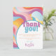Um cartões de agradecimentos de retro. Esta design de vibração do pastel dos anos 70 apresenta uma onda arco-íris em laranja, roxo e azul. Fácil de personalizar com o seu próprio obrigado.