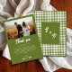 Cartão De Agradecimento Retro Checker Olive green Minimalist Wedding