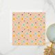 Retro geometric pattern with teal, orange, and black star-shaped diamonds on a peach background. The design conveys a playful, vintage feel.