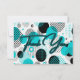 Este cartões de agradecimentos legal apresenta um padrão retrô abstrato a partir dos anos 80-90 com círculos geométricos, linhas e pontos em uma paleta colorida de verde-marinho e preto sobre um pano de fundo branco.