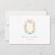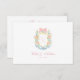 The card adorns a soft pastel, hand-painted floral monogram crest design with a soft pink bow, inspired by the beauty of the Rococo era. The intricate design features a harmonious blend of blue, gold, soft pinks, and greenery.