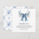Cartão De Agradecimento Romantic Dusty Blue Bow & Roses Wedding