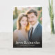 This elegant wedding thank you card features a soft, romantic photo design with warm tones and natural lighting that evoke a sense of love and gratitude. The layout is simple yet sophisticated, focusing on the heartfelt message at the bottom in clean, modern typography. Perfect for expressing appreciation to guests after a special celebration, this design captures a tender moment while maintaining an air of timeless elegance. It’s customizable, allowing couples to personalize their sentiments seamlessly.