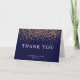 Elementos: folha de ouro rosa real, fontes serif clássicas, design de poeira estelar. Cores: marinho azul, rosa, branco. Temas: romântica, cerimônia noturna, moderna, caprichosa, luxuosa, glam, estrelas, astronomia, elegante, sofisticada. Coleção: Rosa Romântico de Marinho Dourado Stardust Tipo de Produto: Cartões de agradecimentos