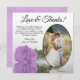 Estes belos cartões de agradecimento de casamento são uma maneira maravilhosa de mostrar seu apreço aos seus amigos e família por celebrar com você no seu dia especial. Eles apresentam a sua foto de casamento em uma moldura oval com um solteiro lilás púrpura e púrpura gravado em seu lado refletindo na água. O título diz "Obrigados e amor" com espaço para uma nota e assinatura personalizadas. Clássico, romântico e sofisticado, estas cartas são a forma perfeita de concluir a sua celebração de casamento.
