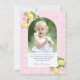 Um design de cartões de agradecimentos fotográfico com fundo de azulejo rosa e branco bonito e limões de aquarela, também com forma de arco de tendência. Mostrado aqui como o cartões de agradecimentos de festa de aniversário da menina, mas todo o texto pode ser personalizado para suas necessidades.
