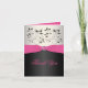 Este cartão de agradecimento floral rosa quente, preto e cinza prateado tem uma fita e laço IMPRESSOS com um broche de joias de pedra preciosa e diamante IMPRESSO que combina com o convite de casamento mostrado abaixo. Se você precisar de outros itens neste estilo, envie um e-mail com sua solicitação para niteowlstudio@gmail.com.