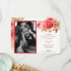 Simples e elegante, este design floral elegante é a maneira perfeita de honrar partido recentemente para um serviço fúnebre do comensal ou do almoço. Rosas vermelhas pintados à mão da aguarela das características com brandamente as folhas e a folha do verde. Toda a tipografia verde e vermelha pode ser mudada para caber seus detalhes memoráveis. Substitua o modelo da foto (tem um filtro preto e branco que possa ser mudado usando o "clique para personalizar mais" a relação azul do botão vista na parte inferior de detalhes do texto) com sua própria cor ou preto e branco para personalizar.